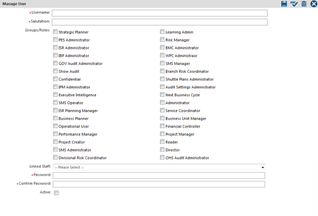 STEP 4: Select a security role for a user. You can select a combination of security roles for a user, however the highest security level will override the lower levels. If one role allows you permission to carry out a certain action and another role doesn’t, the user WILL be allowed to carry out that action. For example, if a User has Reader AND Director permissions, he or she WILL be allowed to update actions within the Directorate. See Security for more information.