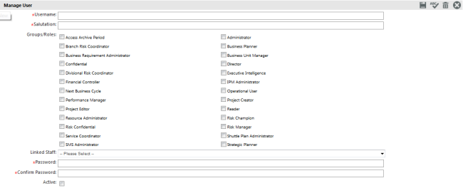 STEP 6: Define a password and set the user as Active by ticking the box. Inactive users will not appear in Staff lists throughout the system.