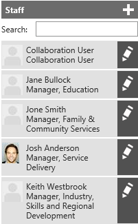 Use the EDIT or DELETE buttons to modify a saved record. You can also search for existing staff members by entering keywords in 'Search' text-box and if you want to edit a staff member detailst, click on the 'Pencil' icon next to its name to edit details.