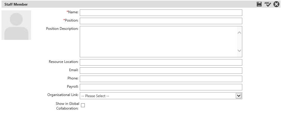STEP 2: Enter basic details such as name, position and contact details (phone and email address). A valid email address will ensure that staff receive automatic email notifications generated via the system.