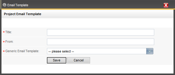 Select an existing email template from the dropdown. These templates are defined within Administration > Project Settings Configuration > Email Templates. |