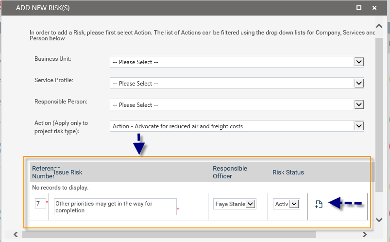 button. You may add as many risks as you like under the one project from this pop up window.