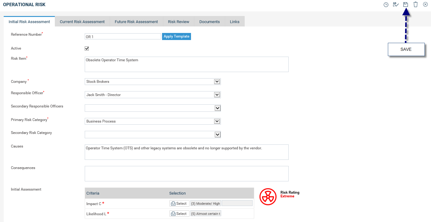 icon to save the initial risk assessment.