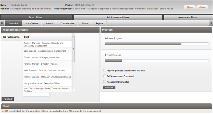 Only the Reporting Officer can access 360 Participants to add or remove a Staff Member from the Assessment |