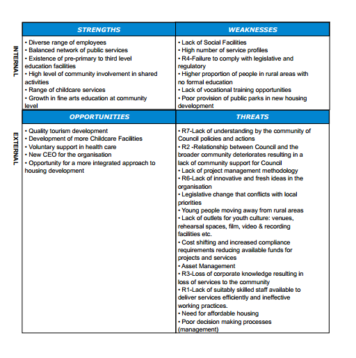 Note: information displayed within the Organisational SWOT’ area in the report will be the information defined within the current business period irrespective of the Reporting year selected within the filtering area.
