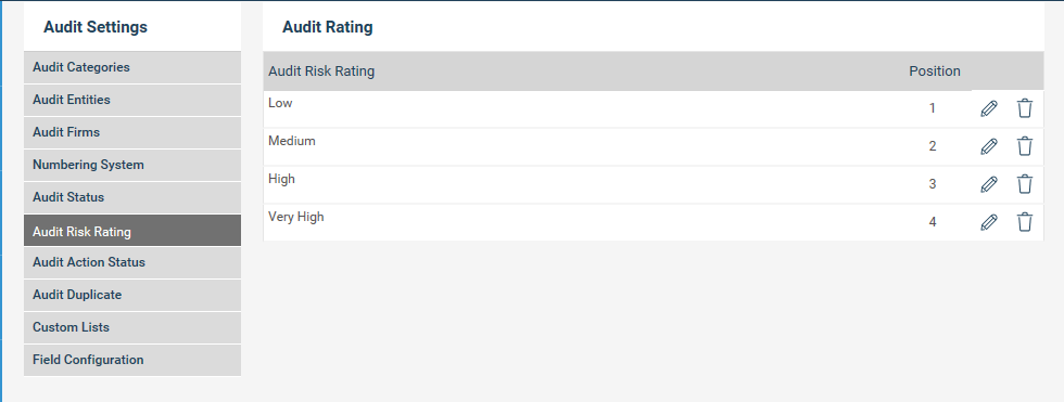 STEP 2: Specify the audit risk rating and position (order) that needs to be displayed within an audit.