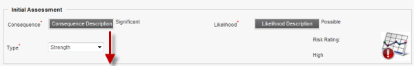 The area allows you to define a consequence reference table. The consequence reference table is meant to assist users in choosing a consequence level for risks by illustrating the Consequence Rating against each Risk Category defined. This tab enables Risk Managers to define and edit this grid.
