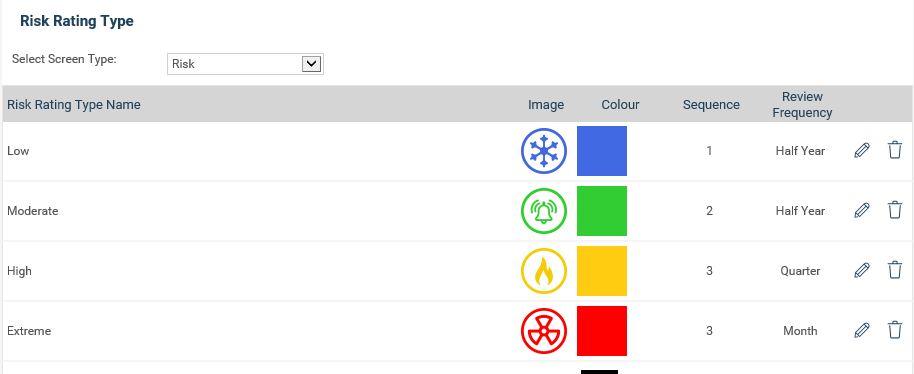 STEP 2: The Review Frequency will be based on the latest risk rating saved within the Current Risk Assessment (see below to see which rating will default to which frequency). However you may also edit this from the risk review page if you have the permission to do so.
