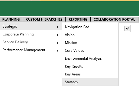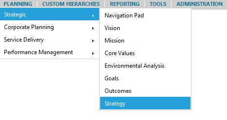 This completes the setup of the Strategic Plan. As you can see, a number of links have now been set up within the plan – Strategies link to Outcomes, and Outcomes link to Goals.